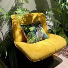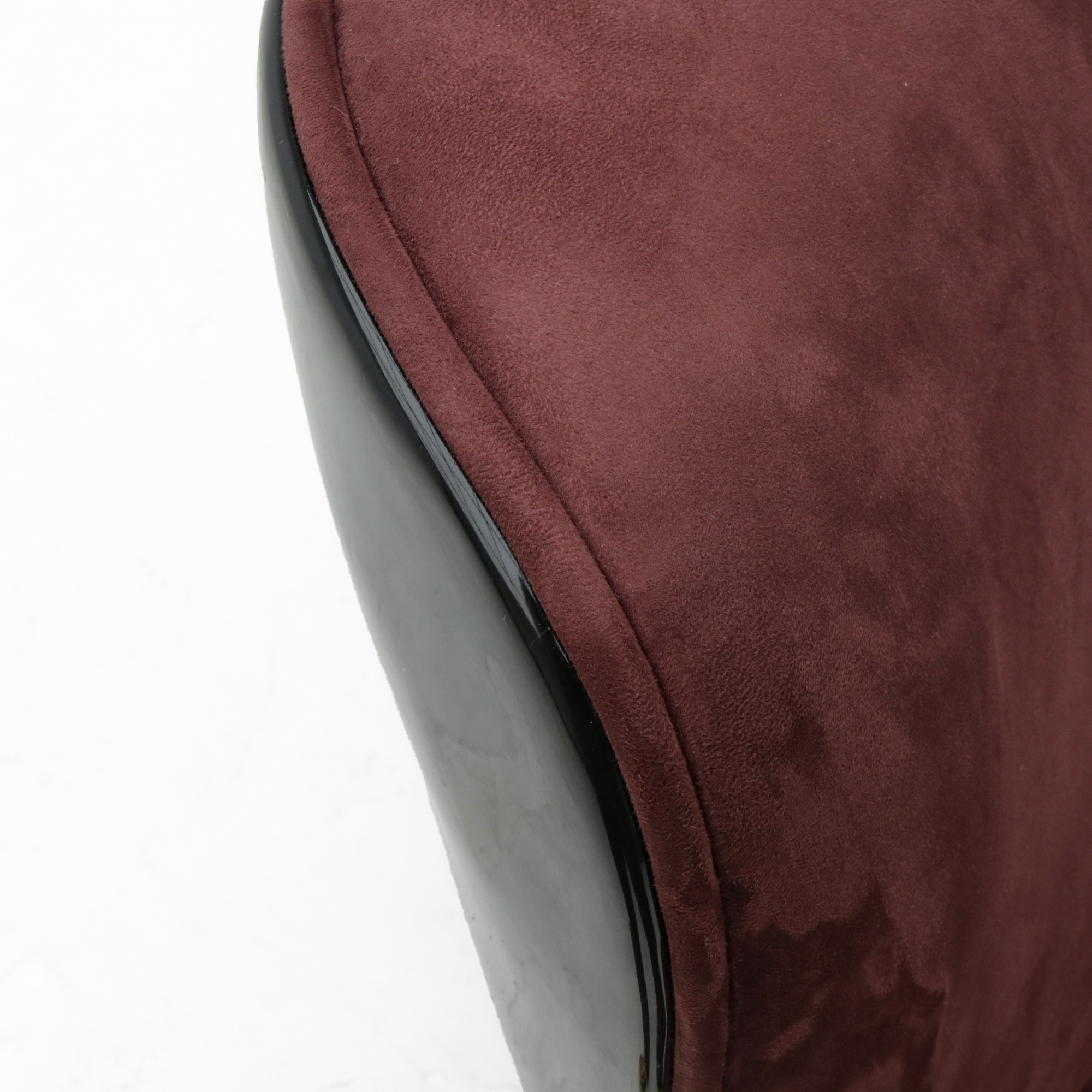 The chair’s outer shell is made from durable molded fiberglass, finished in deep black for a refined contrast. The seat and backrest feature plush, high-density foam wrapped in fine velvet — available in multiple colors including mustard yellow and burgundy red — giving the piece both warmth and personality.