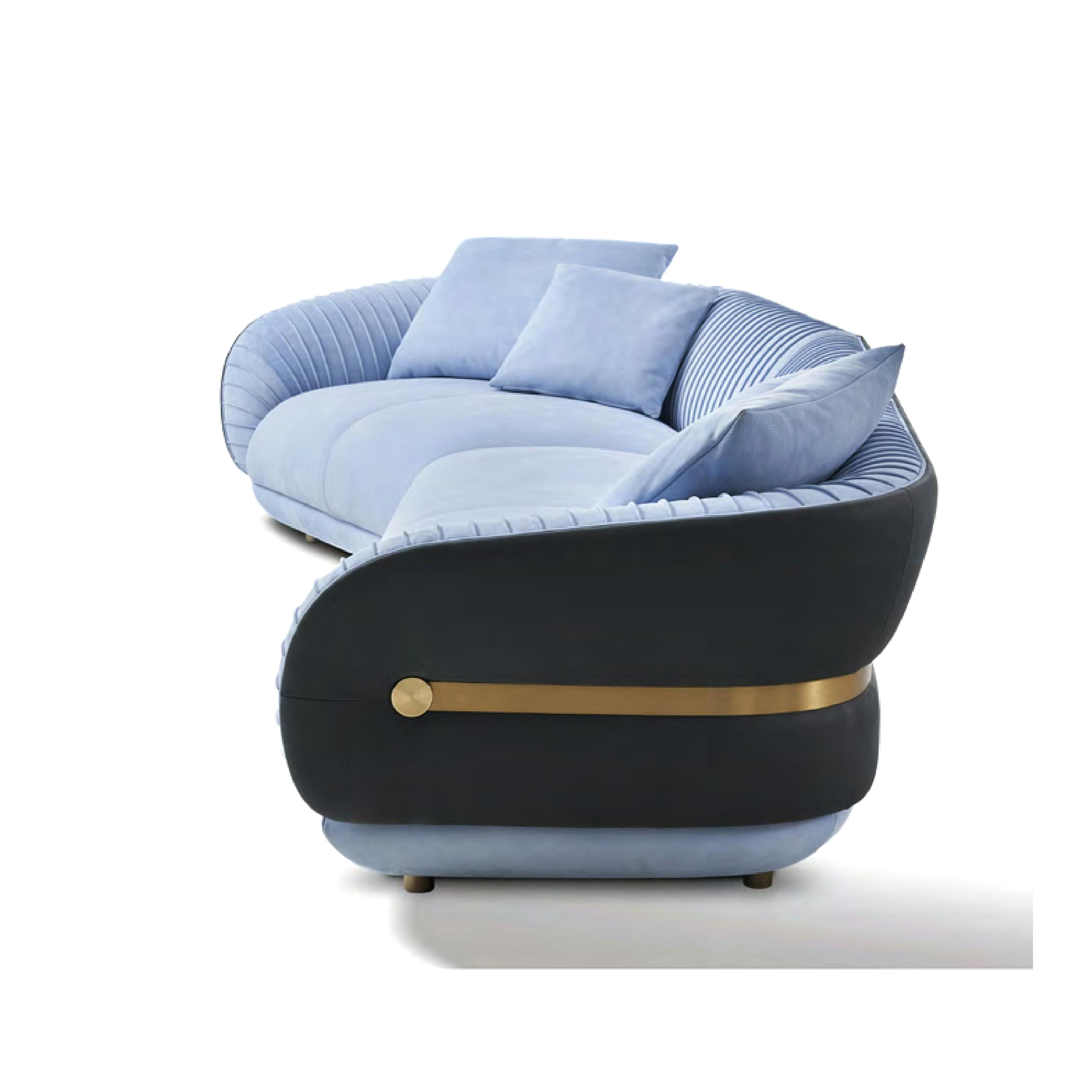 This luxury Velvet Sofa is Crafted from high-quality velvet density foam and imported wood frame, features fresh and gentle colors reminiscent of an early morning by the seaside—soft, playful, and full of anticipation. Its vibrant energy gracefully flows along smooth, elegant lines, cheerfully resonating through accordion-style pleats on the backrest and armrests.