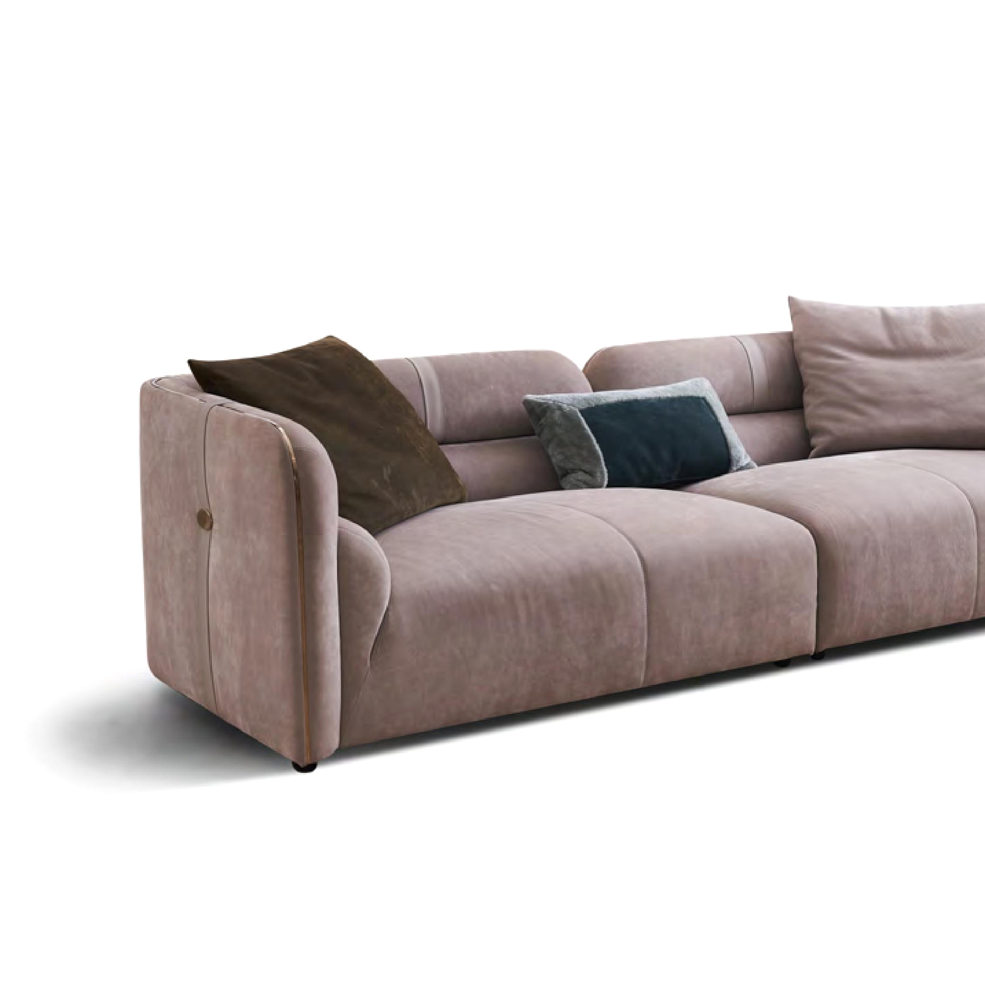 Showcasing the beauty of contemporary living, this sofa emphasizes a commitment to quality. Crafted with premium materials and meticulous workmanship, it delivers an exceptionally ordered visual and tactile experience, adding distinctive charm to your home. From the central strap design on each armrest, accented by a metallic nameplate, to the stainless steel detailing gracefully encircling the armrests and backrest, every feature represents a rational restraint—reminding you that true freedom arises from maintaining order.
