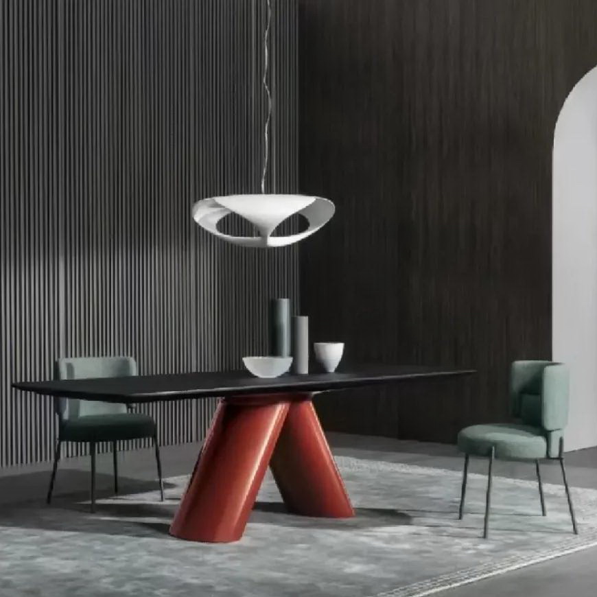 The Viva Dining Table instantly catches the eye with its bold red V-shaped base. This sculptural foundation commands attention and adds a confident splash of color to any room. In the right interior, it becomes a striking centerpiece that blends art and function.